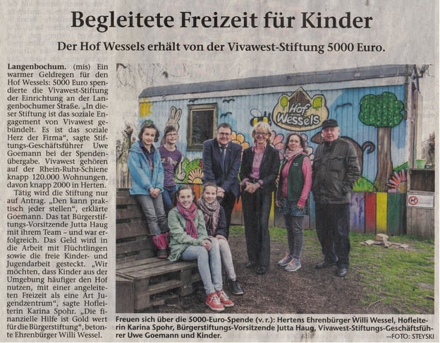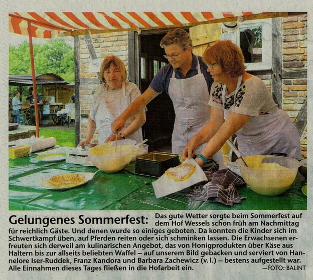 an vielen Projekten auch außerhalb des Hofes Wessels mitwirkt, ist weniger bekannt. Da heißt es dann zumeist, die Grundschule XY hat ein Sommerfest veranstaltet und wir werden nicht erwähnt,