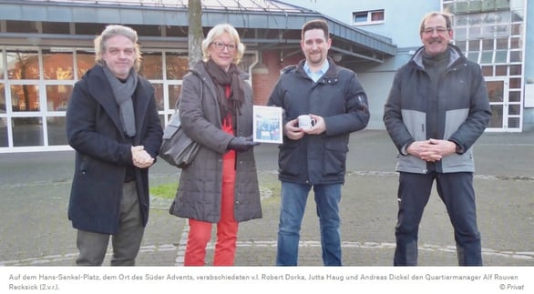 Seine Stelle war auf fünf Jahre befristet - und wurde nicht verlängert. Schon am Montag (17.1.) trat Alf-Rouven Recksick seine neue Stelle in Gelsenkirchener Wohnquartieren an. Mit einer Süderleben-Tasse und einem Erinnerungsfoto verabschiedeten die Aktiven von Süderleben und die Vorsitzende der Hertener Bürgerstiftung, Jutta Haug, den scheidenden Quartiermanager der AWO. Seine Stelle in Herten-Süd wurde ersatzlos gestrichen.